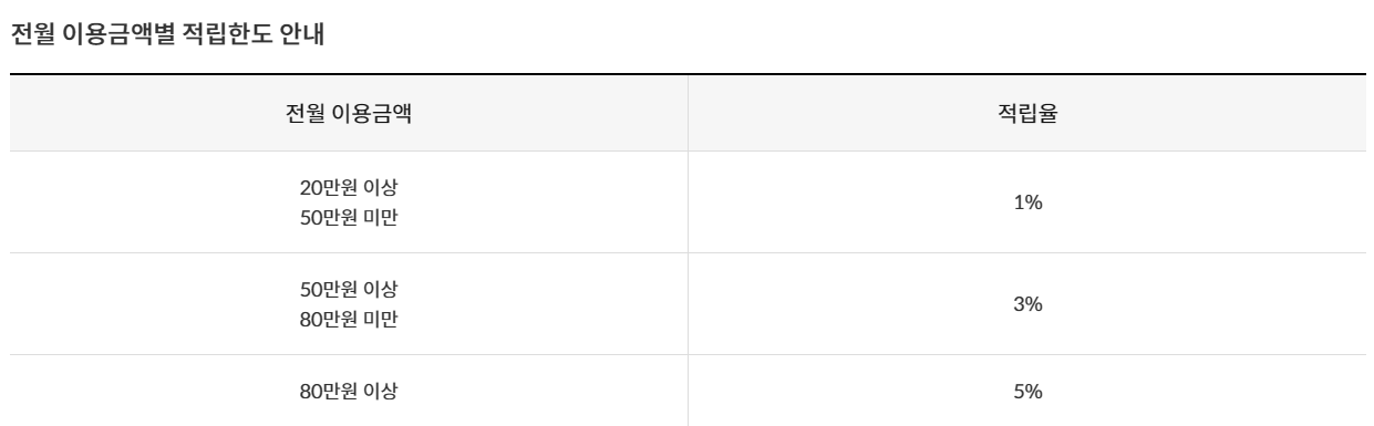 신한 웨이(way) 체크카드는 후불교통기능을 이용한 대중교통 요금을 마이신한포인트로 적립해주는 카드입니다. 전월 실적에 따라 적립률이 1~5%로 상이하고, 월간 적립 한도는 8000원 입니다.