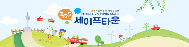 365세이프타운은 세계최초로 안전을 주제로 하여 교육과 놀이시설을 융합한 에듀테인먼트(Edutainment)시설로 각종 재난 및 재해를 직접 또는 가상으로 체험이 가능하도록 만든 안전체험 테마파크입니다. 재난과 안전이라는 조금 무거울수 있는 테마를 재미있게 즐기면서 배울수 있고, 스스로 체험함으로써 몸이 기억하게 하는 안전체험으로 모든 국민을 대상으로 하는 안전체험 테마파크입니다.